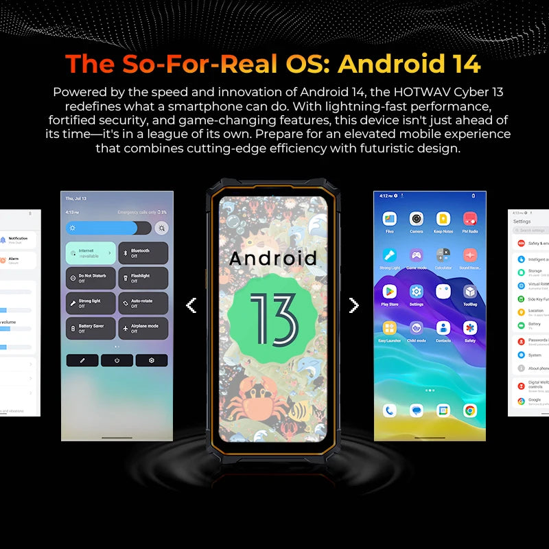 Powered by the speed and innovation of Android 14, the HOTWAV Cyber 13 redefines what a smartphone can do. With lightning-fast performance, fortified security, and game-changing features, this device isn't just ahead of its time-it's in a league of its own. Prepare for an elevated mobile experience that combines cutting-edge efficiency with futuristic design.