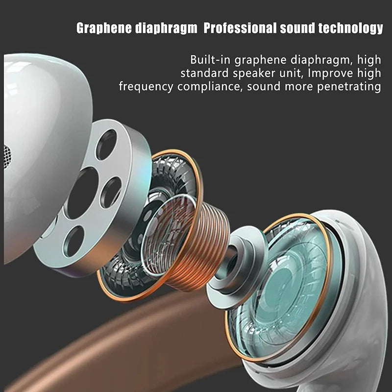 9D Sound QualityBluetooth earbuds adapting in-ear design and the composite diaphragm moving coil unit make the sound full and thick, with a natural sense of hearing, restoring the authenticity of the audio and the dynamics of the sound. Feels like hearing on the scene, providing a realistic sound for you.