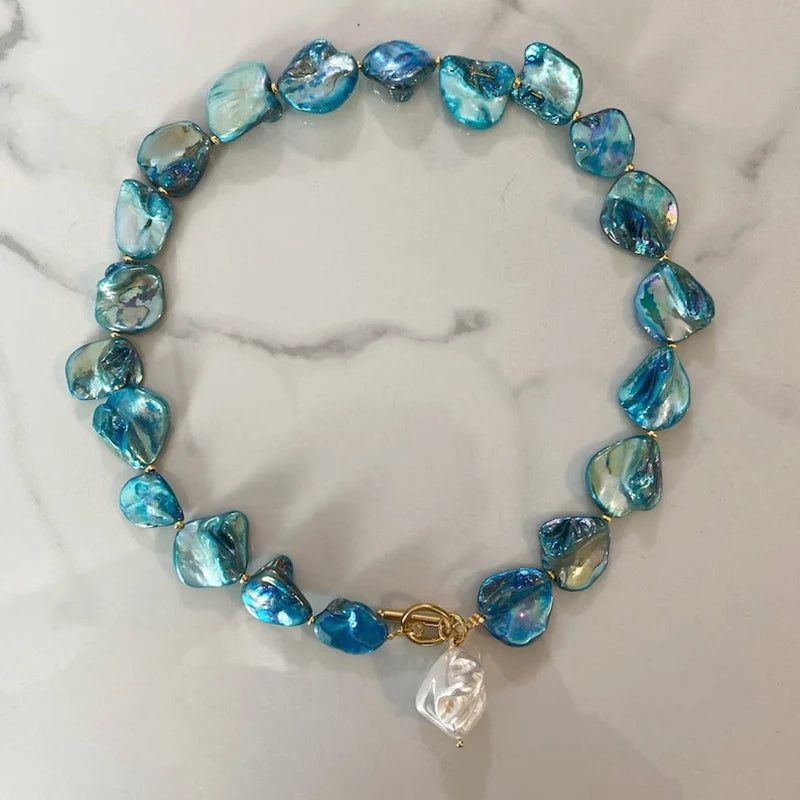 Y2K Trend Wedding Party Jewelry Blue Shell Sheet Choker Necklace For